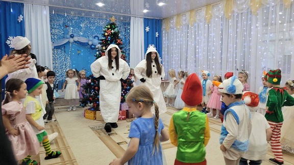 Студенты группы А31 Высоцкий Иван, Липагина Дарья, Рогожина Влада, Максимова Алина, Кузнецова Настя под руководством наставника И.В. Глуховой приняли участие в проведении новогоднего утренника в МАДОУ "Детский Сад № 236 "Лукоморье" Фрунзенского района Г. Саратова.