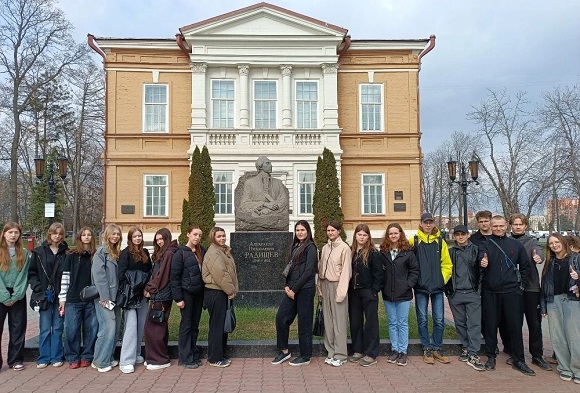 В заключение группа сфотографировалась у памятников А.Н.Радищеву и А.П.Боголюбову на Театральной площади.