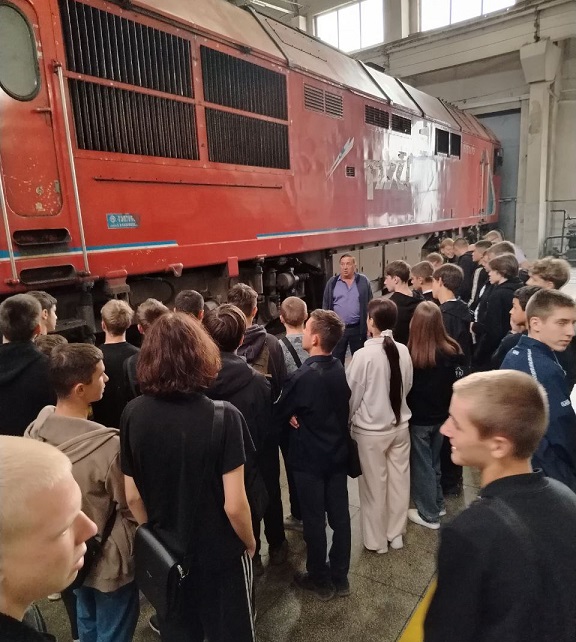 18 сентября группы Т13 и Т14 были на экскурсии в эксплуатационном локомотивом депо Саратов. Разумкин Н. В. хранитель музея депо рассказал ребятам об истории депо. Так же ребята посетили цеха ТР1, ТО3.