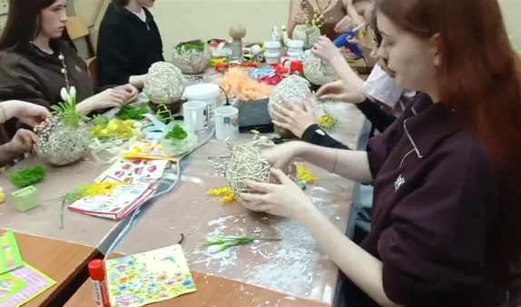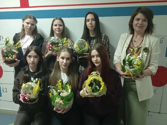 Студенты отделения АТМ и ТЭТРО под руководством наставника Андреевой А.В. создавали композицию «Пасхальный сад. Символ возрождения».